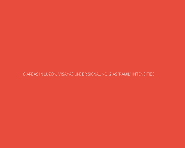 Eight areas in Luzon and Visayas are now under Signal No. 2 as Tropical Storm Ramil (international name: Fengshen) slightly intensified while moving closer to Northern Samar on Saturday morning, October 18, the state weather bureau PAGASA said.