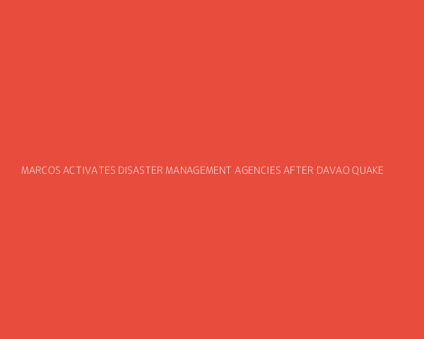 President Marcos ordered disaster management agencies and security forces to evacuate residents in coastal areas and to work with local governments in responding to the impact of the magnitude 7.4 earthquake that struck off the coast of Davao Oriental yesterday.