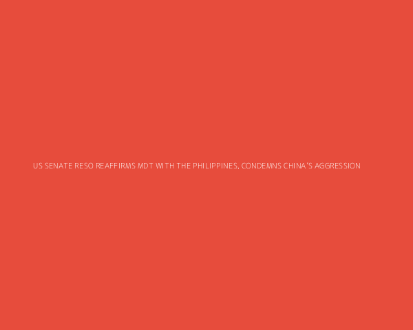 A bipartisan group of United States senators has filed a resolution recognizing the 74th anniversary of the Mutual Defense Treaty with the Philippines and condemning China’s recent actions in the West Philippine Sea, including its repeated harassment of Coast Guard vessels.