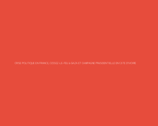 En France, toujours pas de successeur à Sébastien Lecornu alors que Macron a réuni cet après-midi, les chefs de partis (hors RN et LFI) à l'Elysée. Au Proche-Orient, le cessez-le-feu est maintenu entre Israël et le Hamas. L’armée israélienne se retire partiellement de Gaza, permettant le retour de milliers d’habitants. Et puis, en Côte d’Ivoire, la campagne présidentielle est officiellement lancée. Le Président sortant Alassane Ouattara reste le grand favori du scrutin du 25 octobre prochain.