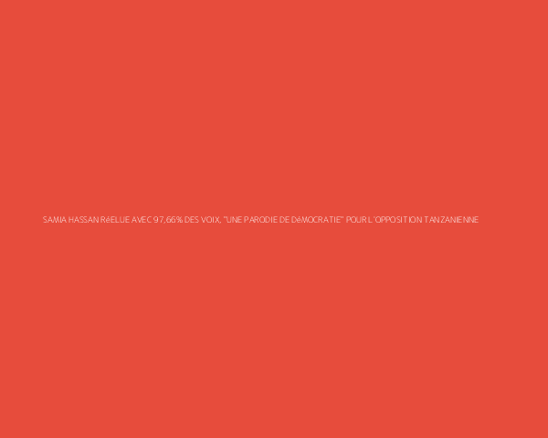 En Tanzanie, Samia Suluhu Hassan est réélue présidente avec près de 98% des voix. Annonce ce samedi de la commission électorale. Une victoire qualifiée de "parodie de démocratie" par l'opposition, après plusieurs jours de violences qui ont fait plusieurs centaines de morts.